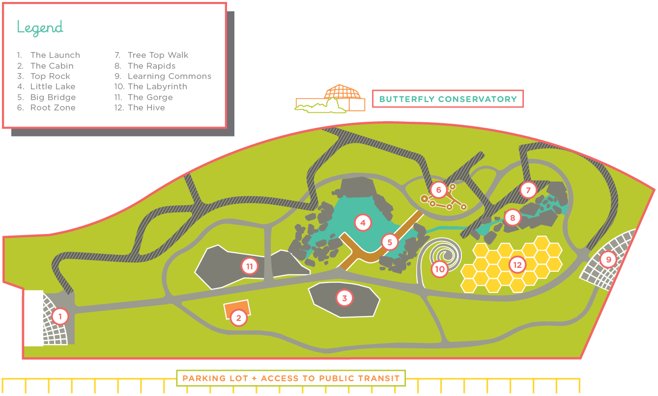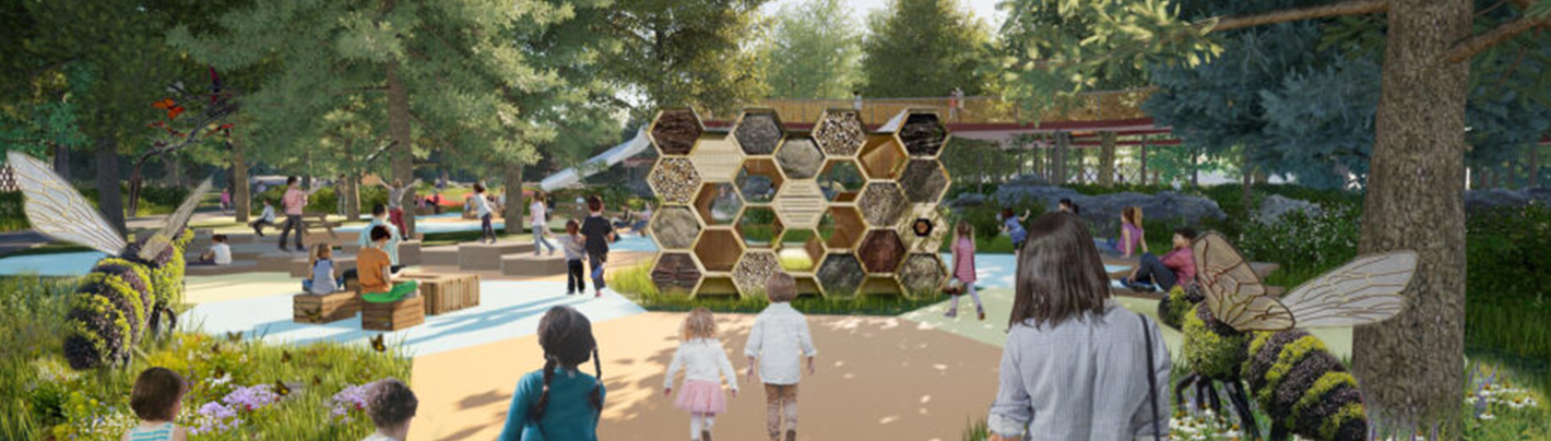 Located in the heart of the garden, this whimsical play space will be abuzz with activity while teaching children about the vital world of insects and pollinators.