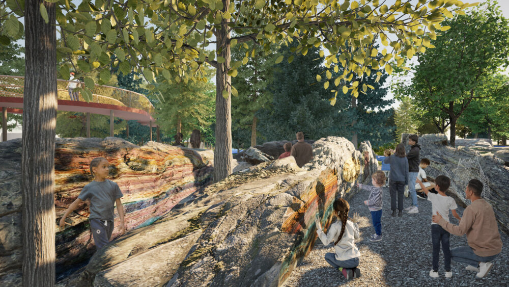 A natural water-play area replicating the rocky Niagara River rapids will share stories of Indigenous travelers and highlight how erosion has impacted the Niagara River, while sharing messages of water safety.