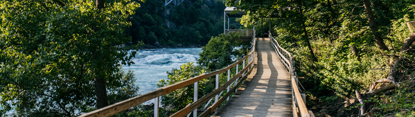 Make your way down the riverside boardwalk as you take in the crashing waves and enjoy an excellent view of the 410-million-year-old rock layers of the Niagara Gorge.
